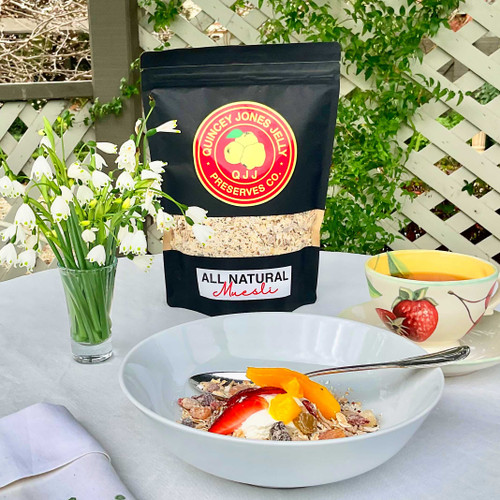 This is the kind of muesli you’d expect from a preserving kitchen that takes pride in doing things properly. We developed it alongside our range of artisan pantry staples, part of the same passion and process that drives everything we make at QJJ. Peek behind the curtain in this blog post on our food philosophy and kitchen ethos.